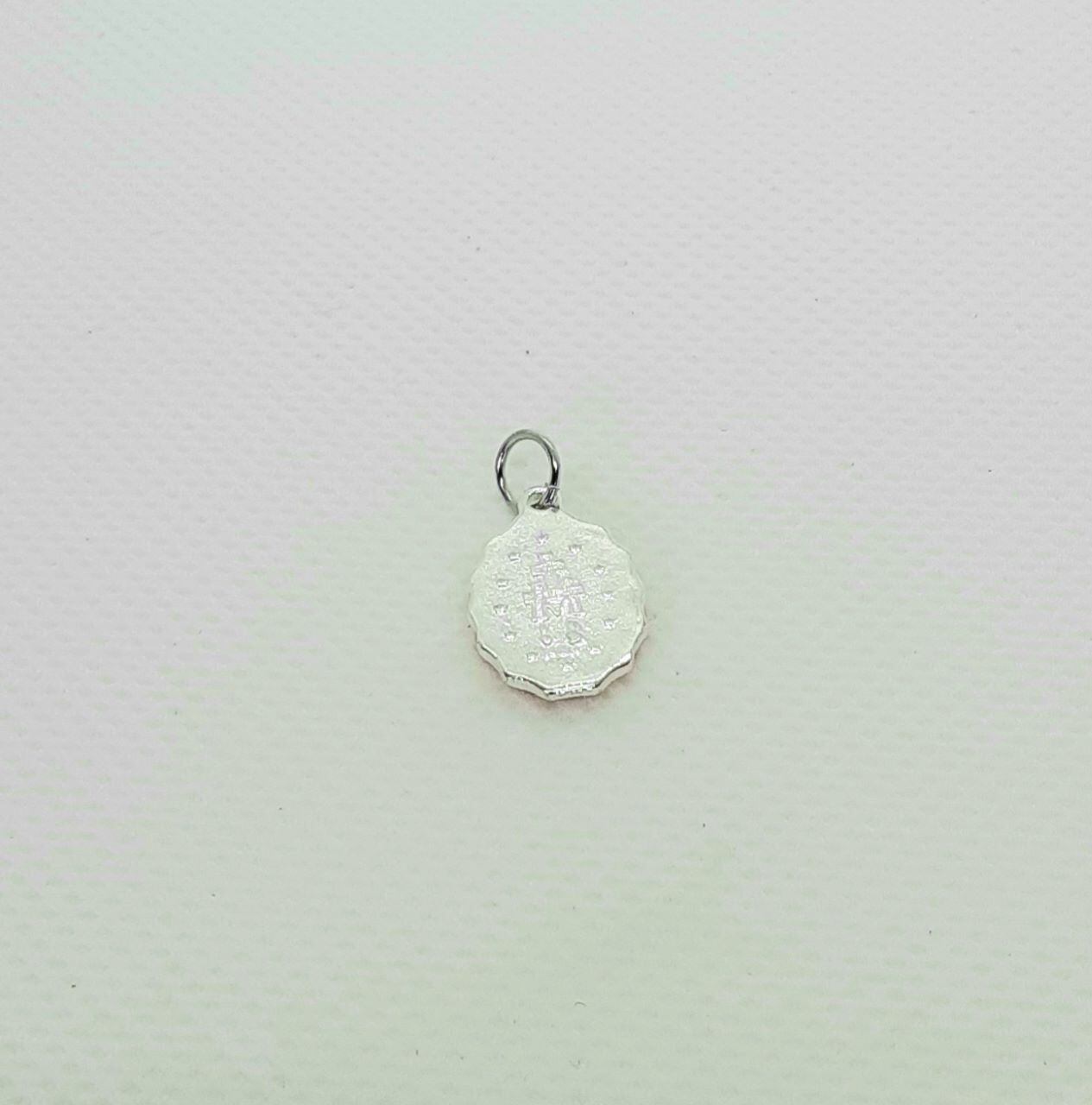 不思議のメダイでも有名な絵柄です。裏には十字架とマリア様のシンボルであるMの絵柄が刻まれています。別売りの鎖を購入してペンダントとして使用するか、お持ちの鎖にはめて使用するか、またストラップなどにつけて使用するか、使い方は自由です。メダイをつけた人を、聖母マリア様が守ってくださいますように…。