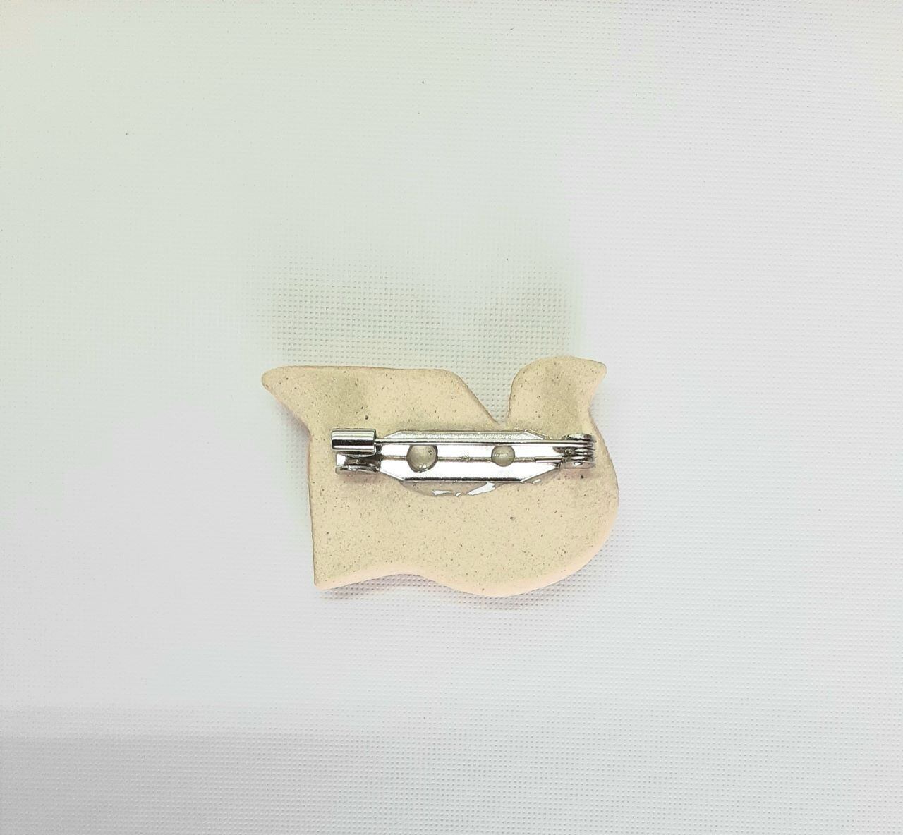 本焼きで作成されたブローチです。鳩は聖霊を意味したり、平和のシンボルでもあります。世界の、お互いの平和を望んで、つけてみるのも素敵です。すべての人に、神の平和と慈しみが届きますように。堅信のお祝いにも、ご利用ください。焼き物の温かみのある味がでています。