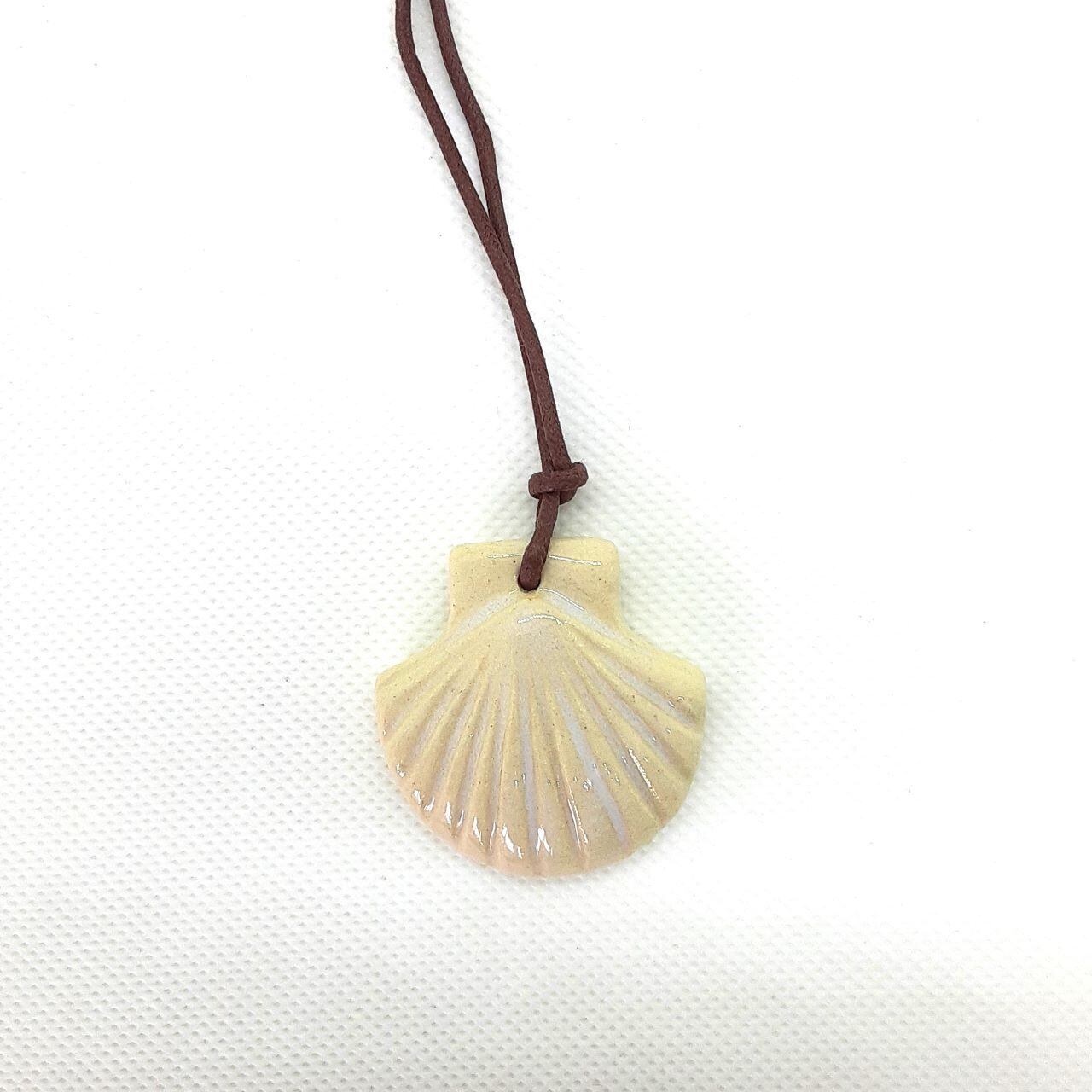 小物類 巡礼のシンボル・帆立貝の焼き物ペンダント 白土